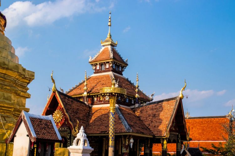 หลังคาแบบเปิดโล่งตามสไตล์ล้านนา . ที่วัดแห่งนี้นะคับยังมีซุ้ มพระบาทด้วย เค้าสร้างครอบพระพุทธบาทไว้ ภายในอัศจรรย์มาก เพราะเราจะมองเห็นแสงหักเห ปรากฏเป็นเงาพระธาตุและพระวิหารในด้านมุมกลับ แบบมีสีสันด้วย!! แต่มีข้อห้ามไม่ให้ผู้หญิงขึ้น แฮะๆ