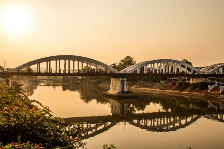 ที่แรกที่ผมผ่านคือสะพานรัษฎาภิเศกครับ เป็นสะพานที่มีสีขาวทอดยาวข้ามแม่น้ำวัง ว่ากันว่าสะพานแห่งนี้มีมาตั้งแต่สมัยสงครามโลกครั้งที่หนึ่งแล้วครับ เป็นสะพานที่รอดจากการถูกโจ มตีทิ้งระเบิด เพราะสมัยนั้นมีการทาสีพรางตาไว้ แต่เนื่องจากว่าเมื่อก่อนมันเป็นไม้ เลยทำให้ชำรุดผุพัง เลยก่อสร้างใหม่โดยเสริมคอนกรีตเข้าไปคับ