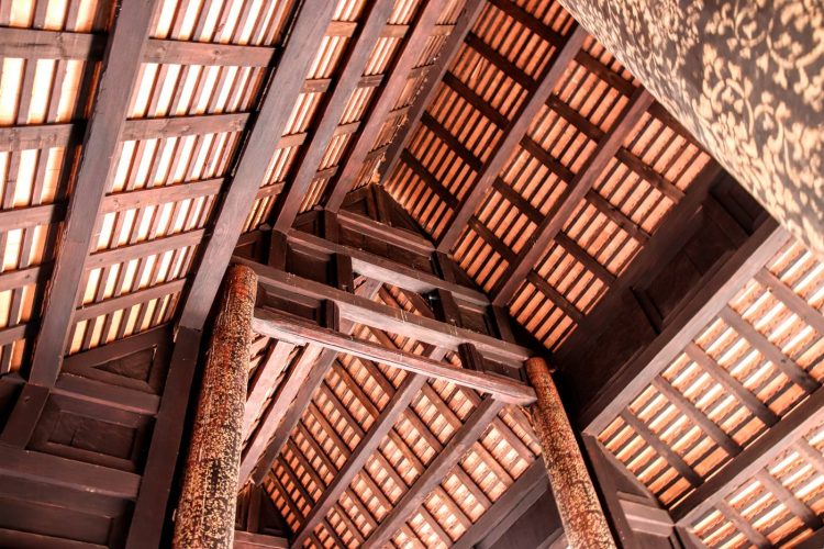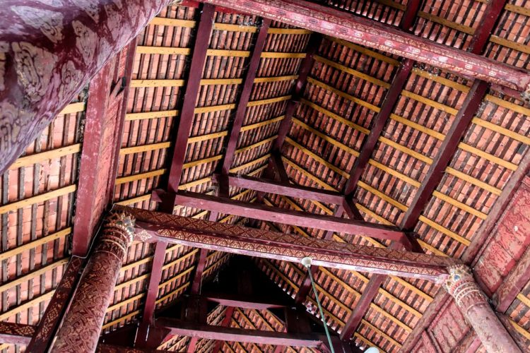 นี่ครับเพดานของวัด จะเห็นว่ามีแผ่นฝ้าที่มีการ