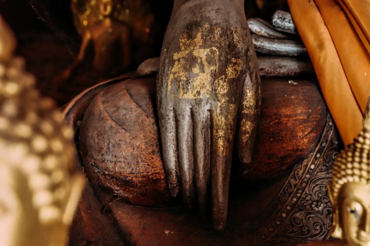 พระพุทธรูปปางมารวิชัยครับ ปางนี้เป็นปางที่เกิดขึ้นระ หว่างที่พระพุทธเจ้ากำลังจะ ตรัสรู้ แล้วก็มีมารยกทัพมา บอกว่า นี่ที่ตรงนี้เป็นที่ของข้านะ ท่านมีบุญมากเพียงใดที่จะมา ใช้ที่นี่เป็นที่นั่ง พระพุทธเจ้าก็เลยคลายจากสมาธิแล้วใช้มือนี้ “เคาะผืนแผ่นดิน” เพื่อเรียกพระแม่ธรณีมาช่วย เป็นพยานถึงคุณงามความดีที่ พระองค์สั่งสมมาแต่ช้านาน