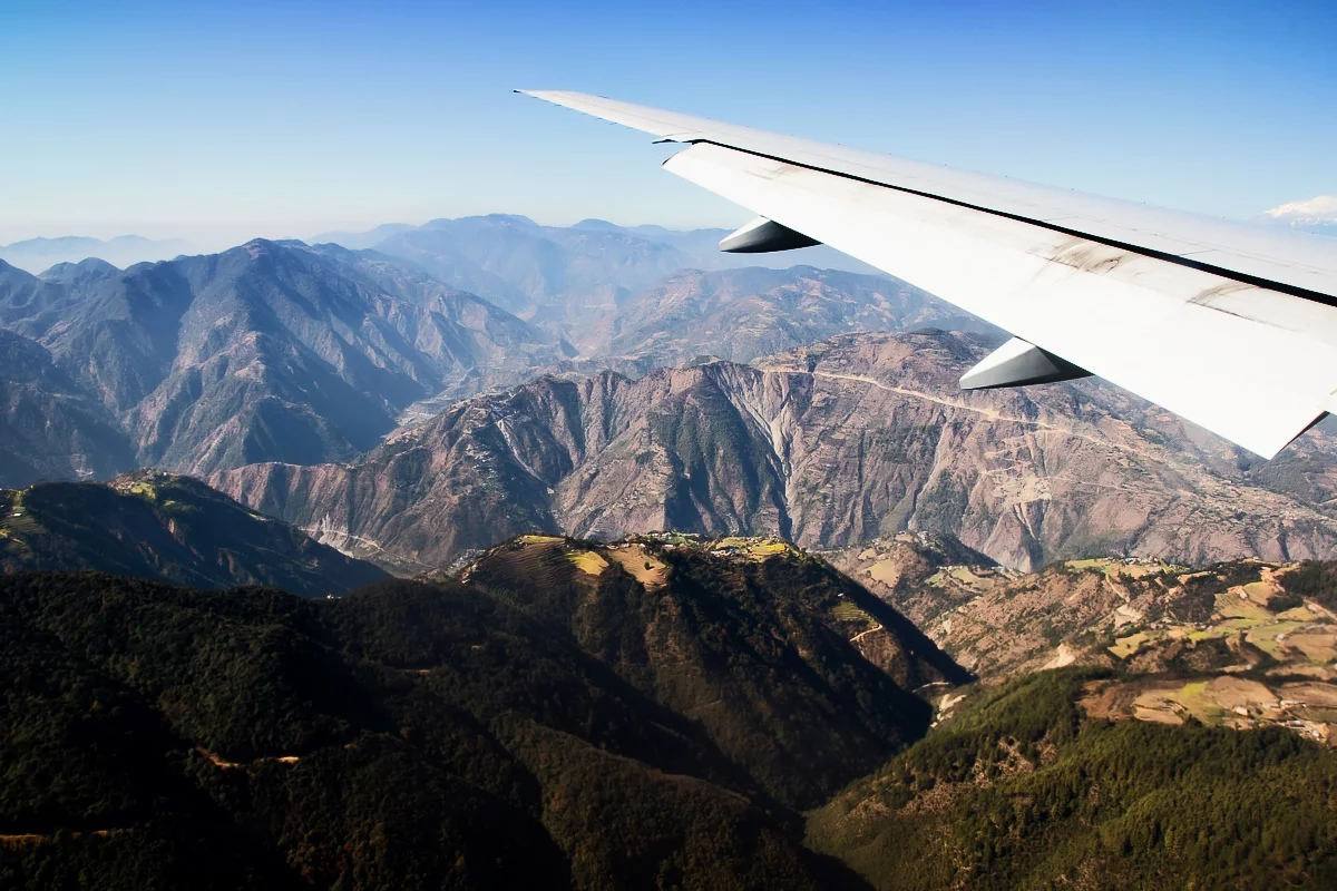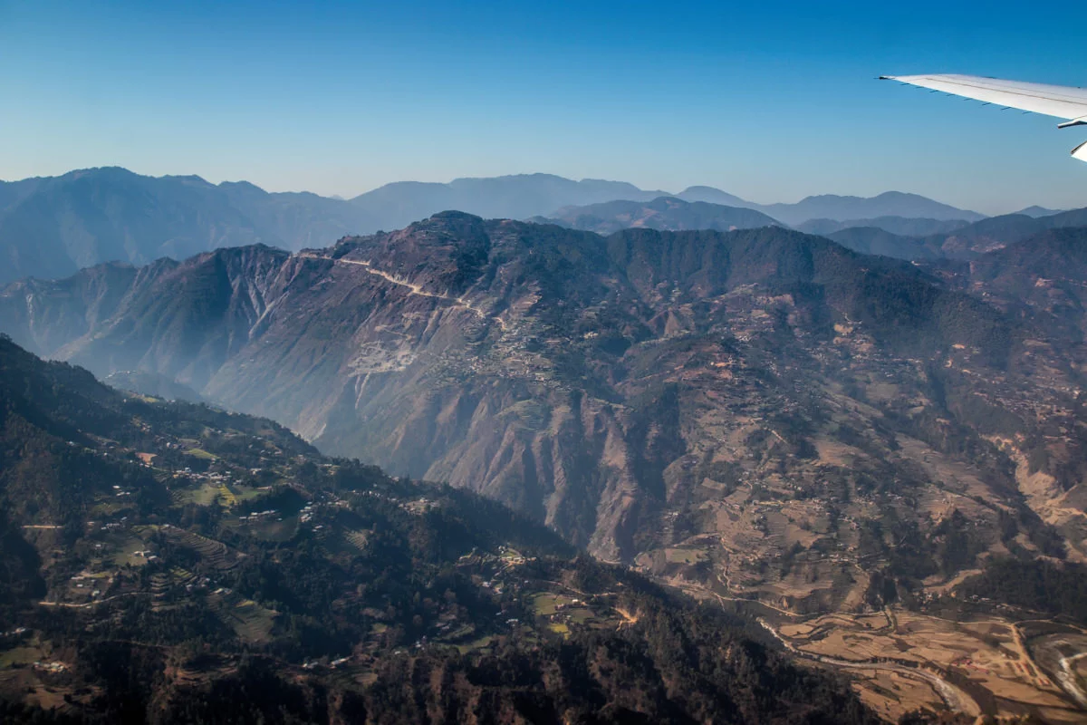 รุ่นพี่ผมแนะนำว่า ตอนขามาให้นั่งฝั่ง K นะ จะได้เห็นวิวหิมาลัย แต่ผมมาเช็คอินที่สนามบินแล้วเค้าบอกว่าฝั่งนั้นเต็มหมดแล้ว ผมเลยได้นั่งฝั่ง A แทน แม้จะอดเห็นหิมาลัยแบบสวยๆ แต่ก็ได้เห็นวิวภูเขาที่มีฉากหลังเป็นภูเขาหิมะอันยิ่งใหญ่บ้างเหมือนกันครับ ผมก็ประทับใจมากตั้งแต่อยู่บนเครื่องแล้ว