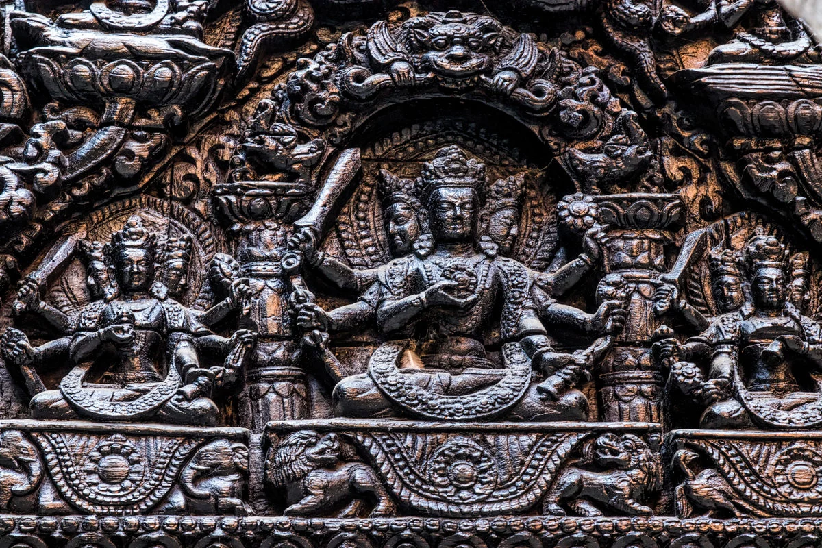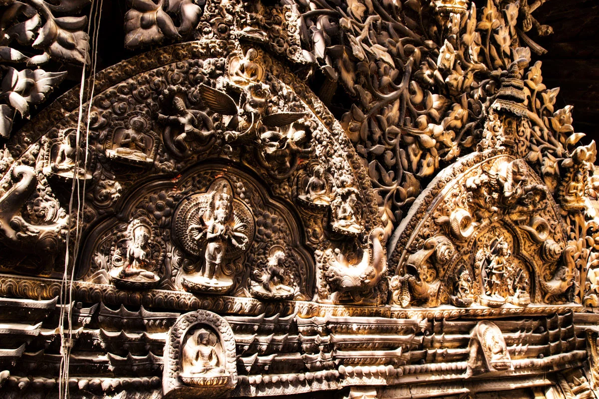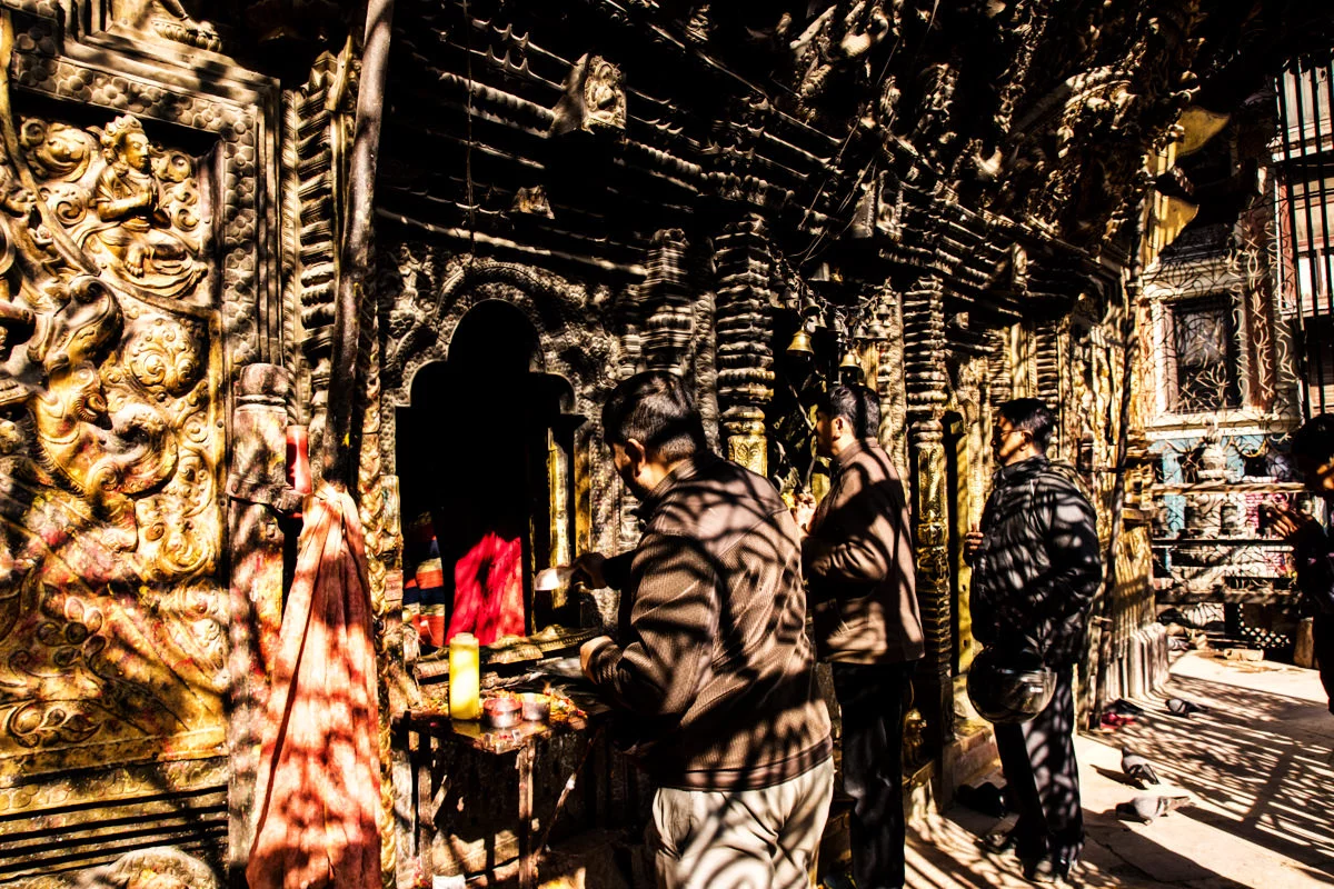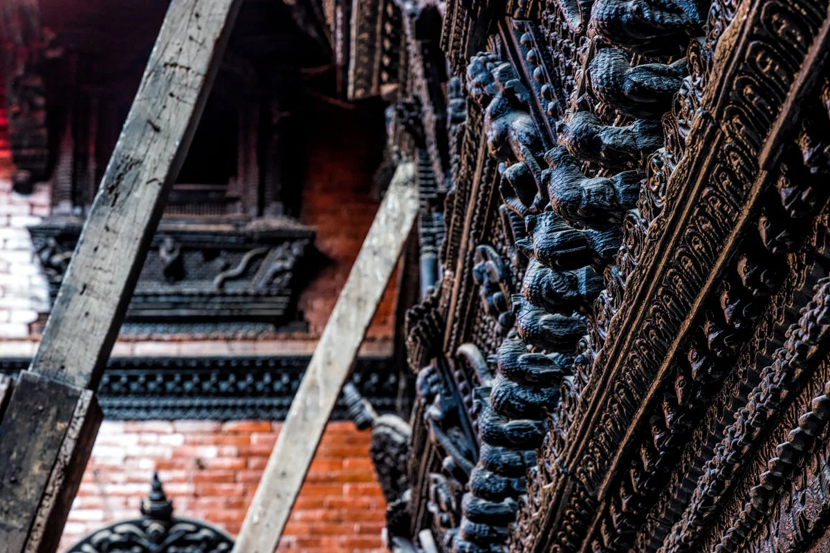 “อาคารนี้เต็มไปด้วยภาพแกะสลักกามาสูตรา” ผมอ่านถึงบรรทัดนี้แล้วก็สะดุดกึก อยากจะรู้ว่าพูดถึงอาคารไหน ก็เลยลองอ่านดูดีๆ ก็ปรากฎว่าเป็นอาคารที่นกพิราบลงมาเยอะๆนั่นแหละครับ ผมก็รีบเดินดุ่ยๆ ออกไปดูว่ากามาสูตราที่ว่าเป็นอย่างไร พอเห็นแล้วก็โอ้โห โบ๊จั้มโบะ เป็นภาพแกะสลักไม้ในท่าทางของการร่วมเพศครับ แหม่ น่าสนใจขึ้นมาละสิ ฮ่าๆ เหตุผลที่เขาแกะสลักเป็นเรื่องราวของกามาสูตราก็เพราะว่าในสมัยก่อนนั้นคนเนปาลแต่งงานกันตั้งแต่อายุยังน้อยครับ จึงให้มาเรียนรู้เรื่องเพศผ่านงานแกะสลักพวกนี้