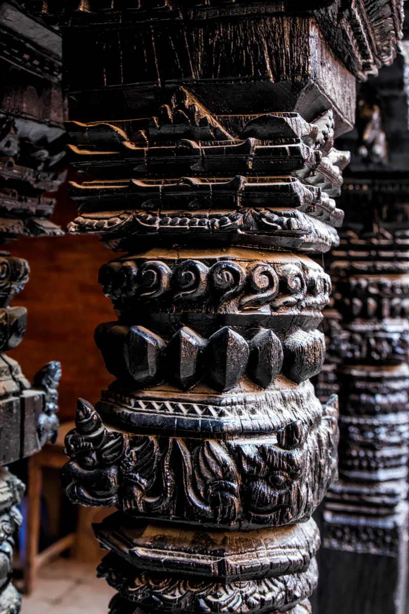เสาอาคารที่ทำจากไม้ แกะสลักเป็นลวดลายละเอียดละออมาก ไหนจะบานประตู ไหนจะหน้าต่าง โอยๆ มันเป็นเรื่องราวทางศาสนาครับ สวยสุดๆ