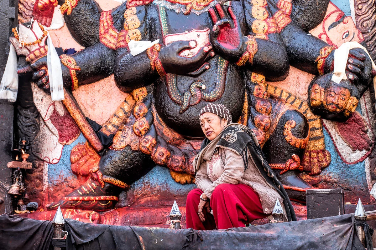 ถัดจากศาลาที่ว่าผมก็เดินเข้าไปยังโซนของจตุรัส แล้วก็สังเกตเห็นรูปปั้นขนาดยักษ์ครับ เป็นรูปปางดุร้าย ผมรีบเปิดไกด์บุคดูว่านี่คืออะไร หนังสือก็บอกว่าเป็นปางที่เอาไว้จ้องมองความชั่วร้าย เมื่อก่อนเวลามีนักโทษทำผิดก็จะให้มาสาบานตนต่อหน้าเทพปางมารร้ายองค์นี้ครับผม