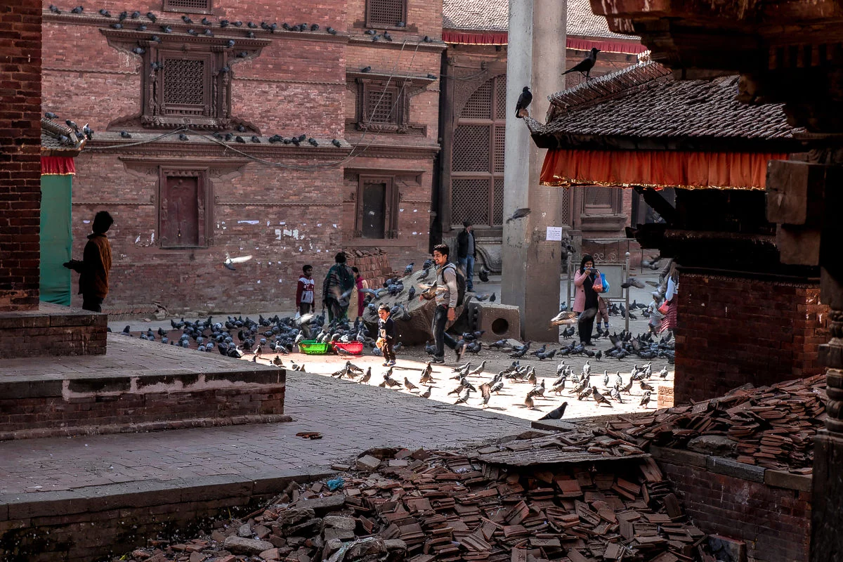 ผมก็เดินออกมาจากจตุรัสครับ เดินผ่านอาคารที่มีคนนั่งเล่นกัน แต่ดูเหมือนว่ารอบนี้คนจะเริ่มหนาแน่นเข้าไปทุกที ทั้งจากคนเนปาลเอง และจากนักท่องเที่ยวเอง ผมยืนถ่ายรูปต่ออีกนิดหน่อย พลันก็นึกสงสัยว่า เอ คนที่เขามานอนกันที่นี่ เป็นชาวบ้านที่มานอนอาบแดด หรือว่าเป็นคน Homeless กันนะ? เพราะบางคนก็ดูนอนจริงจังกันมาก สภาพก็ดีแล้วเหมือนไม่น่าจะแค่หนีมานอนอาบแดด